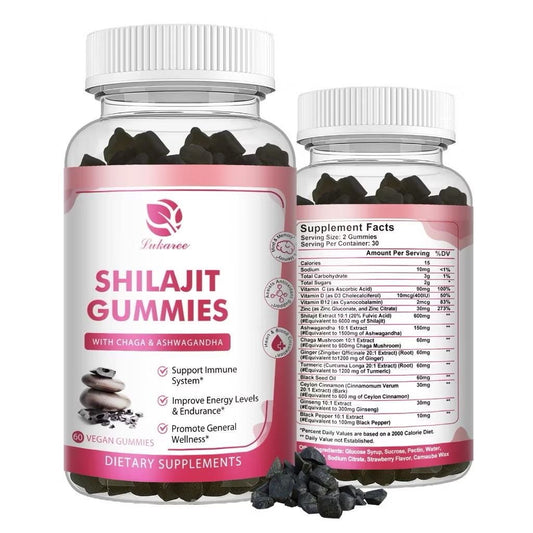 Authentic Himalayan Shilajit Gummies with Chaga & Ashwagandha – Vegan Energy and Wellness Supplement – 60 Count Strawberry flavour